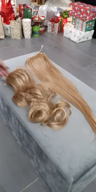 Set di due code di estensioni per capelli biondi. - Una coda è mossa e l'altra è liscia. - Le estensioni sono di colore biondo dorato. ottimo stato vendo causa inutilizzo