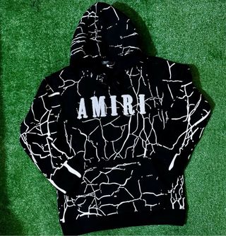 Completo Amiri composto da felpa con cappuccio e pantaloni. - Design con stampa effetto crepa. - Logo Amiri a contrasto sul davanti.