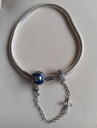 Elegante braccialetto in argento 925, misura 18, perfetto per aggiungere un tocco di stile al tuo look. - Charm a forma di globo terrestre smalto blu su argento. - Charm a forma di aeroplano. - Catena di sicurezza in argento. - Chiusura sicura.