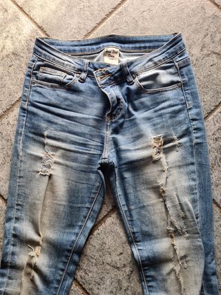Jeans da uomo in denim blu con un look moderno. - Design strappato - Vestibilità slim - Chiusura con zip e bottone Per altre foto o informazioni non esitate a contattarmi