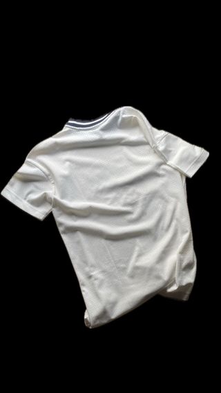Maglietta Nike vintage a rete, bianca. Perfetta per un look casual e sportivo. vestibilitá oversize - Modello a rete - Collo a righe blu scuro