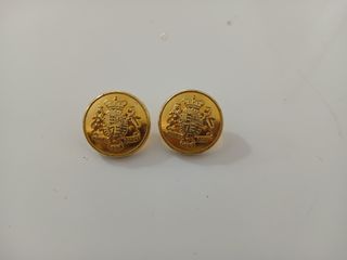 Set di due gemelli vintage con un design classico. - Realizzati in plastica. - Dettaglio con stemma e corona. Set 2 Gemelli Bottoni da Polso Vintage Plastica Dorata Stemma Reale Britannico In buone condizioni come da foto
