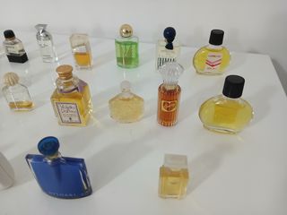 Lotto di miniature di profumi vintage. - Profumi di marche note come Armani e Bvlgari. - Flaconi in miniatura, ideali per collezionisti. - Diverse fragranze e design dei flaconi. Lotto Profumi Mignon Miniature Vintage Armani Bulgari Borsari Gaby Anni 70 80 90 come da foto