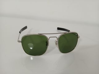 Occhiali da sole American Optical modello Pilo. - Montatura in metallo color argento. - Lenti verdi. - Design classico aviator. Occhiali da Sole Ao American Oprical Original Pilot Aviator Militari Vintage come nuovi