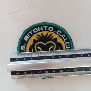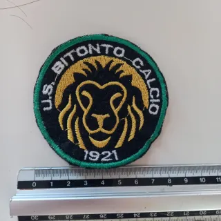 Toppa ricamata U.S. Bitonto Calcio con l'anno 1921. - Design rotondo con bordo verde. - Immagine di un leone stilizzato al centro.