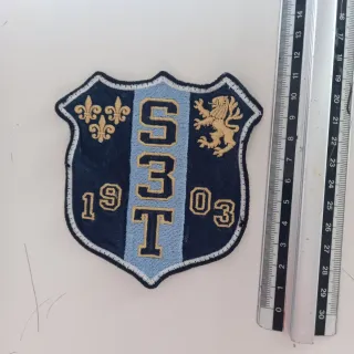 Toppa ricamata con stemma e sigla SBT 1903. - Design a scudo. - Dettagli con gigli e leone. - Colori predominanti blu e azzurro.