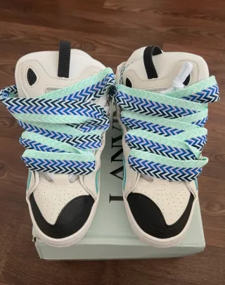 Scarpe sneakers Lanvin. - Design alto - Lacci colorati con motivo a zig-zag - Dettagli in nero e turchese
