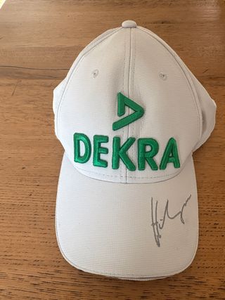 Cappellino Dekra nuovo, con logo ricamato. - Colore bianco - Logo Dekra verde - Firma autografa sul frontale