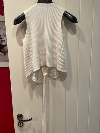 Elegante gilet bianco con un design unico. - Allacciatura incrociata sul davanti - Tessuto a coste - Senza maniche