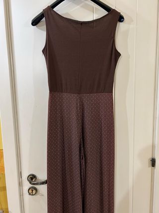 Jumpsuit smanicato da donna con fantasia. - Scollo rotondo. - Vita segnata. - Gamba lunga. - Tessuto leggero e fluido.