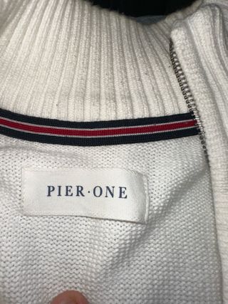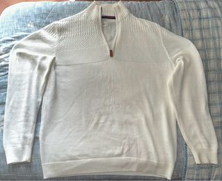 Maglione da uomo con zip frontale e colletto alto. Presenta un motivo a trama diversa sulle spalle e sul petto. - Zip frontale. - Colletto alto. - Motivo a trama sulle spalle. -100% cotone. -Lo vendo per regalo errato.