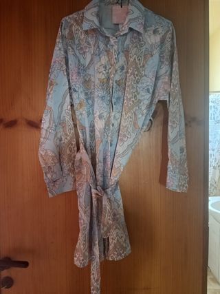 Elegante abito da donna con una vivace fantasia floreale e paisley. Perfetto per diverse occasioni. - Maniche lunghe. - Cintura in vita per un fit personalizzato. - Tessuto leggero e confortevole.