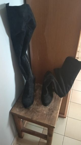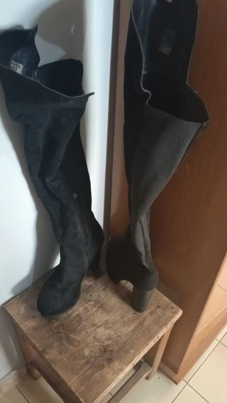 Stivali lunghi da donna. - Materiale scamosciato. - Zip laterale. - Tacco largo.