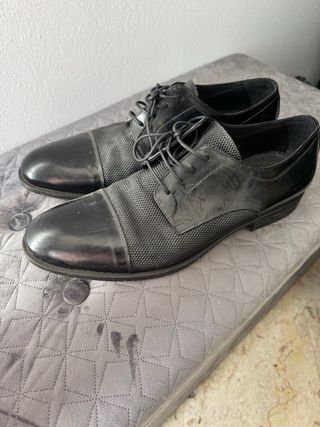 Eleganti scarpe da uomo in pelle. - Design moderno con inserti in tessuto. - Chiusura con lacci. - Punta arrotondata.