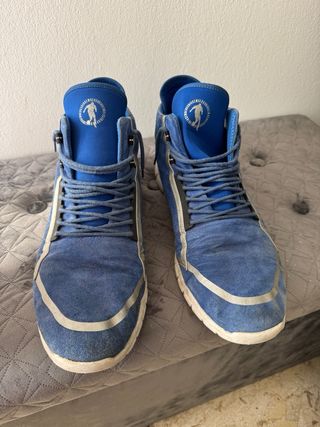 Scarpe sportive da uomo in pelle scamosciata. - Design a stivaletto. - Dettagli riflettenti. - Lacci blu.