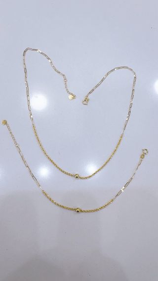 Elegante set composto da collana e bracciale. - Realizzati in oro giallo 18 carati (750). - Design raffinato con catena a maglie alternate e un piccolo elemento sferico centrale lucido da 4mm su ciascun gioiello. - Lunghezza bracciale 17cm con prolungamento a 19cm - Lunghezza collana 40cm con prolungamento a 45cm - Chiusura di sicurezza: Maglia a molla articoli nuovi, corredati da astucci shopper e garanzie