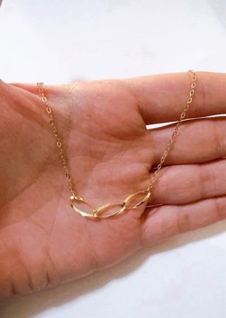 Elegante collana in oro giallo con un design a fantasia. - Materiale: Oro giallo 18kt 750 - Elementi centrali a forma di anelli intrecciati. - Finitura: Lucida e diamantata - Chiusura di sicurezza: Maglia a molla - Lunghezza: 45cm - Spessore maglia: 1,5mm - Dimensione ovali centrali: 1,35cm x 5,5mm Articolo nuovo, corredato da astuccio shopper e garanzia