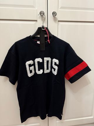 T-shirt GCDS a maniche corte. Ho anche il cartellino di plastica - Logo GCDS bianco sul davanti. - Dettaglio a banda rossa sulle maniche.