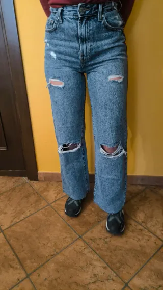 Jeans Bershka a vita alta, perfetti per un look moderno e comodo. Eur 34 it38 xs - Vestibilità dritta - Tessuto denim resistente - Chiusura con zip e bottone
