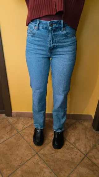 Jeans a vita alta, mai indossati. - Vestibilità comoda. - Tessuto denim resistente.