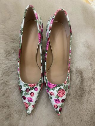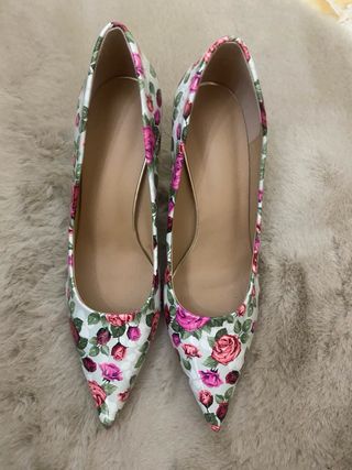 Eleganti scarpe da donna con una vivace stampa floreale. - Design a punta. - Tacco alto.
