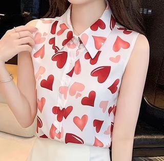 Nuova camicia smanicata donna con cuori