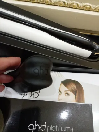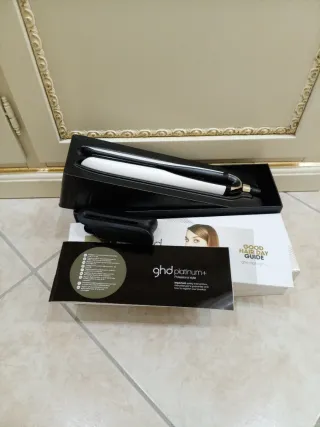 Piastra professionale GHD Platinum+. - Colore nero e bianco. - Include guida Good Hair Day Guide e istruzioni di sicurezza.