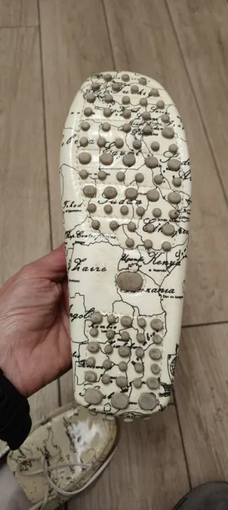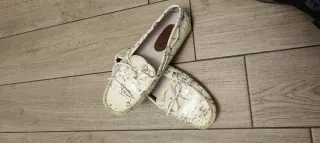 Eleganti mocassini con un design unico. Colore avorio. - Fantasia mappa. - Laccio decorativo sul davanti. - Logo sul sottopiede.