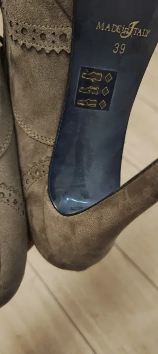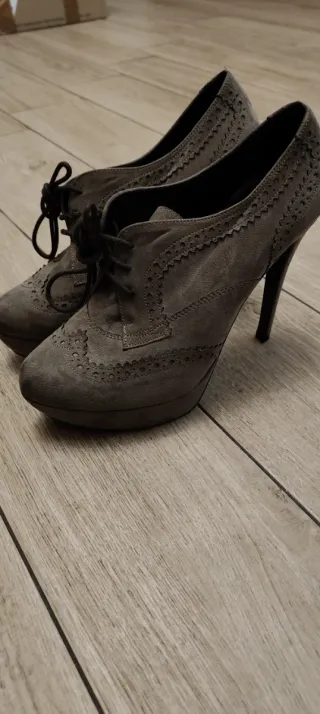 Eleganti scarpe da donna con un design ricercato. - Materiale scamosciato. - Dettagli traforati. - Chiusura con lacci. - Tacco alto.