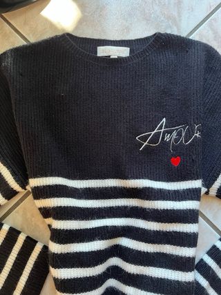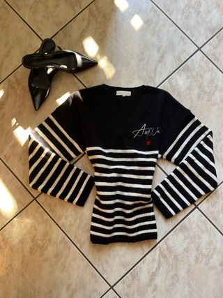 Maglia a maniche lunghe con fantasia a righe orizzontali. - Composizione: 70% cotone.