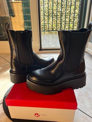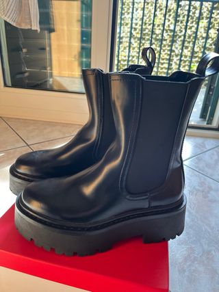 Stivali Chelsea H&M in ecopelle nera. - Design con suola platform. - Elastici laterali per una facile calzata. - Linguetta posteriore per indossarli comodamente.