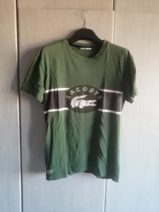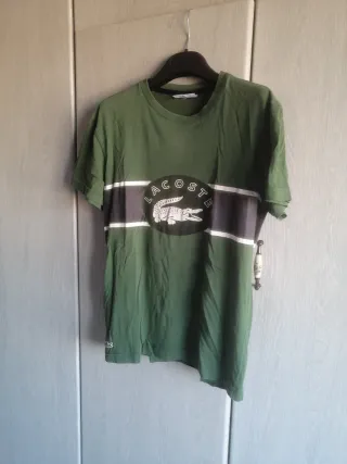 T-shirt Lacoste a maniche corte con un design a blocchi di colore. - Logo Lacoste sul petto. - Dettaglio a righe orizzontali.