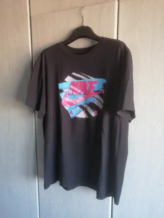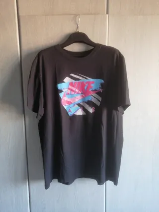 T-shirt Nike nera con una grafica accattivante sul petto. - Stampa grafica colorata - Girocollo