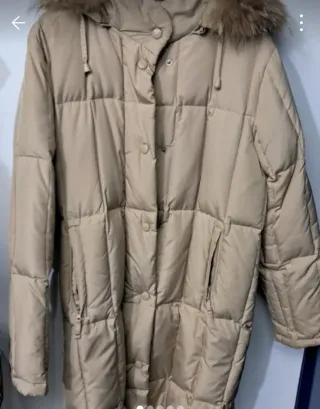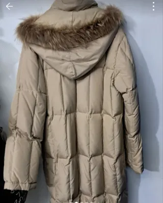 Bellissimo piumino d'oca, perfetto per tenersi al caldo. - Cappuccio con pelliccia. - Chiusura con bottoni. - Tasche laterali con zip.