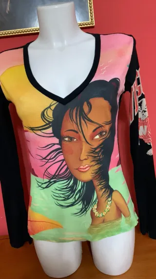 Camicia da donna a maniche lunghe, dal taglio classico e moderno. Mai indossata, nuova con cartellino. - Chiusura frontale con bottoni. - Due tasche sul petto con patta. - Dettagli dorati su colletto e polsini. - Polsini con bottoni. - Collo a camicia. Materiali: 50% lyocell, 50% cotone.