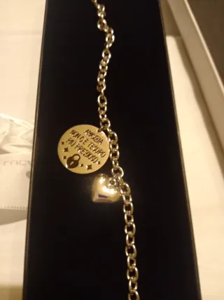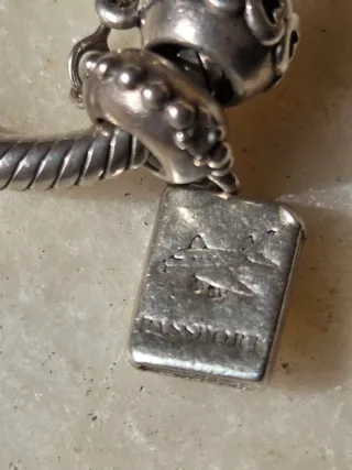 Bellissimo bracciale Pandora in argento, perfetto per collezionare i tuoi momenti speciali.peso gr50 - Charm a forma di cuore stilizzato. - Charm a forma di tartaruga. - Charm con cuori traforati. - Charm a forma di valigetta. - Charm a forma di cuore bombato. - Charm con iniziale N. - Charm quadrato con incisione. - Catena di sicurezza.