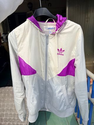 Antivento Adidas con un design sportivo e moderno. taglia 34 europea che corrisponde ad una XS . ma essendo modello over sta bene anche ad una S come me - Zip frontale. - Cappuccio. - Tasche laterali.