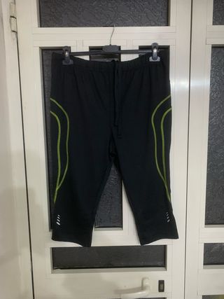 Pantaloncini sportivi Crivit. - Colore nero con inserti e cuciture a contrasto verdi. - Lunghezza al ginocchio. - Vita elasticizzata con coulisse. - Dettagli riflettenti sul fondo gamba.