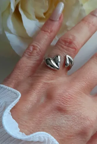 Anello doppio cuore regolabile in acciaio inox anallergico e resistente all'acqua,non si ossida con il tempo Colore argentato e adattabile a qualsiasi dito,ottima idea regalo