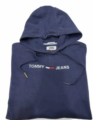 Felpa con cappuccio Tommy Jeans di colore blu navy. - Logo Tommy Jeans ricamato sul petto. - Cappuccio con laccetti. - Tasca a marsupio. - Polsini e fondo a costine.
