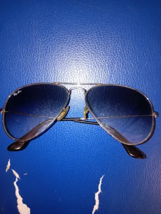 Occhiali da sole Ray-Ban modello Aviator. - Montatura color argento. - Lenti sfumate blu.