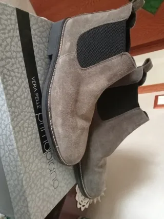 Eleganti stivaletti in camoscio tortora - Materiale: Vera Pelle scamosciata. - Design Chelsea boot con inserti elastici. - Suola robusta.