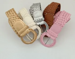 Set di 4 cinture intrecciate con fibbie decorative, più un omaggio. - Cinture con design intrecciato. - Fibbie rotonde. - Diverse colorazioni disponibili. + Geco in omaggio profumo per la casa o armadio o cassetti