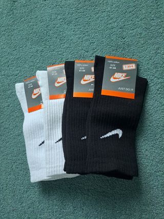 Set di 4 paia neri di calzini Nike. - Materiale: 100% cotone. - Taglia: 41-44. - Prezzo originale: 7,99 € per paio.