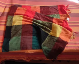 Sciarpa enorme, molto calda e vivace nei colori. Perfetta per le giornate più fredde. - Design a blocchi di colore. - Morbida al tatto. - Misure 184x78