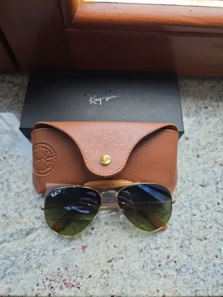 Modello: Principalmente identificato come RB3025 Aviator Classic o varianti simili come l'Aviator Large Metal. Caratteristiche: Forma a goccia classica, montatura sottile in metallo e naselli regolabili. Lenti: Polarizzate (come indicato dalla "P" accanto al logo), disponibili in varie tonalità tra cui il classico verde G-15 o marrone sfumato. Scatola originale e custodia in pelle