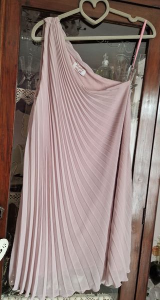 Elegante abito estivo con un design unico. - Tessuto leggero e fluido. - Dettaglio plissettato asimmetrico. - Spallina sottile.
