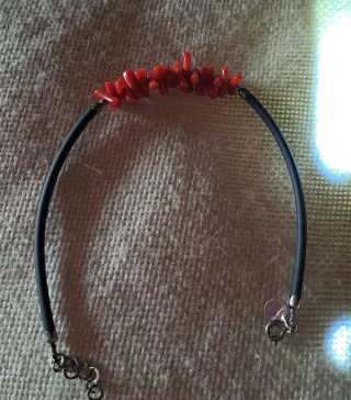 Bracciale caucciù e corallo rosso