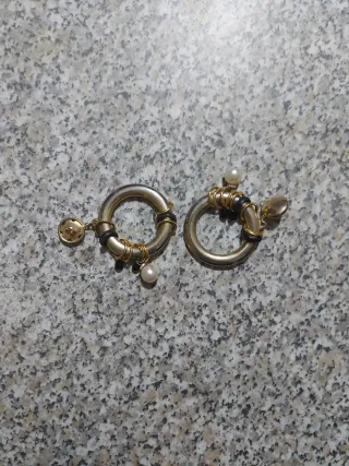 Lotto di bigiotteria assortita. - Collana con perline rosse e bianche. - Spilla a forma di farfalla. - Coppia di orecchini a cerchio dorati. - Coppia di orecchini a clip neri. - Orecchini a cerchio dorati con perla.