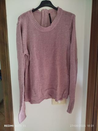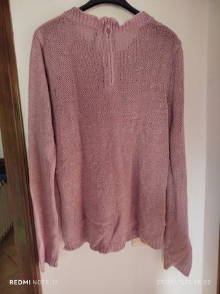 Maglioncino con un tocco scintillante, perfetto per aggiungere un po' di brio al tuo guardaroba. - Zip posteriore apribile per un facile utilizzo. - Tessuto leggero e confortevole intrecciato con fili argentati luccicanti.